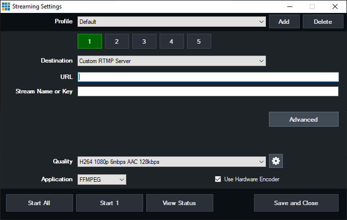 An overview of all the settings available can be found in the Streaming - Settings section.